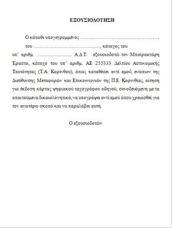 που πρέπει να υποβάλετε στην Υπηρεσία που θα καταθέσετε τα χαρτιά σας για την έκδοση της κάρτας ψηφιακού ταχογράφου. Χρήσιμη για οποιαδήποτε υπόθεση σας με το Υπουργείο Μεταφορών.